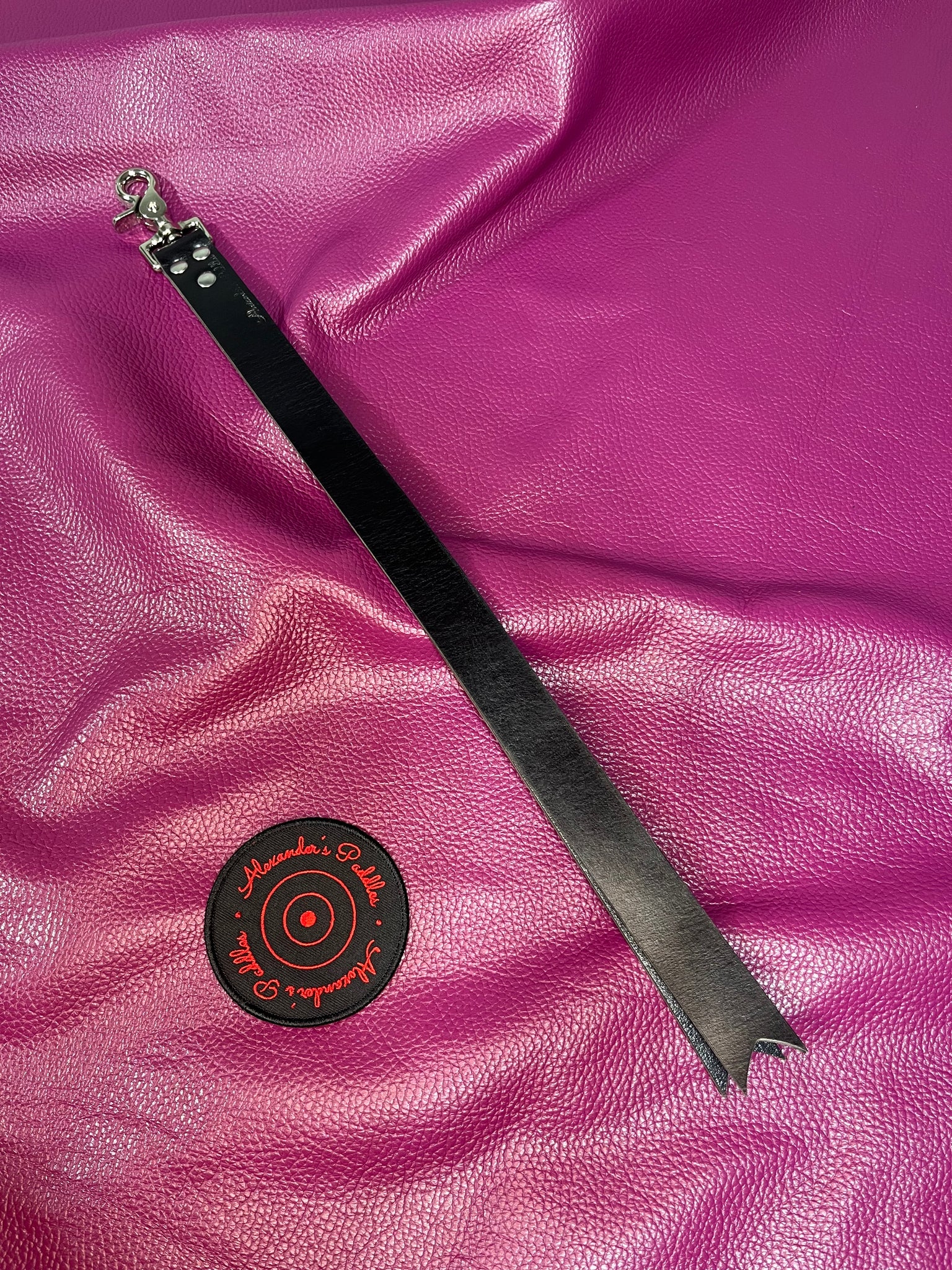 Full grain buffalo leather lash with quality hardware including a swivel clip.This piece is easy to pack in a bag or pocket or clip to a belt loop, affordable, and has surprising, long lasting impact. A mix of thud and sting.